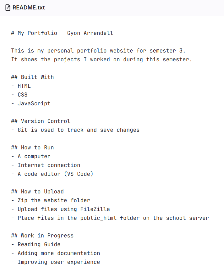 I'm documenting my website files using git for version control. Here u can find the link for my git : this is the link